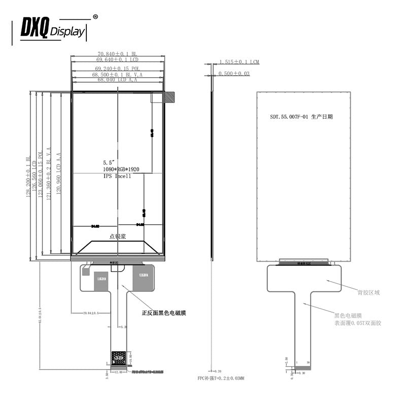 5.5 DXQ5D5053 720x1280 300nits MIPI/41pins TFT 1000:1
